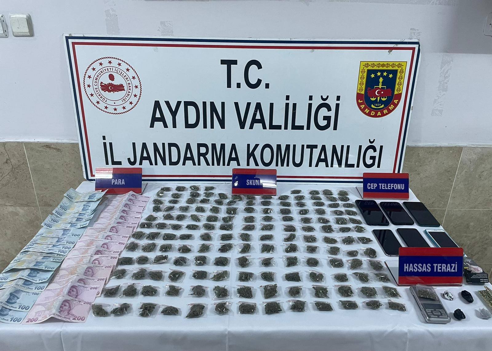 Aydın İl Jandarma Komutanlığı Kaçakçılık ve Organize Suçlarla Mücadele Şube Müdürlüğü ve Nazilli İlçe Jandarma Komutanlığına bağlı ekipler bir otomobilin İzmir’den Nazilli İlçesine uyuşturucu sevkiyatı yapacağı bilgisi üzerine çalışma başlattı. Yapılan çalışma sonucunda sabah saatlerinde İsabeyli Mahallesi yakınlarında takibe alınarak durdurulan şüpheli otomobilde yapılan aramada 154 satışa hazır 515 gram skunk uyuşturucu madde, suçtan elde edildiği değerlendirilen 4 bin 600 TL para ve 1 hassas terazi ele geçirildi. Otomobilde bulunan T.A., A.P., S.E.A., N.P., T.B. 5 şüpheli yakalandı.
