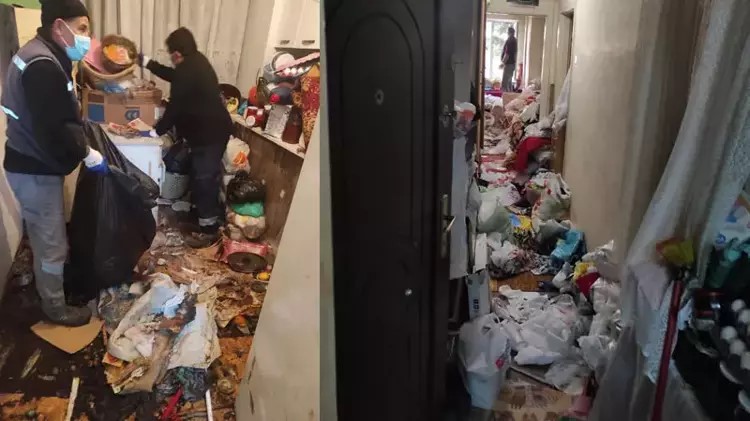 Anne ile oğlunun yaşadığı evden 45 ton çöp çıktı
