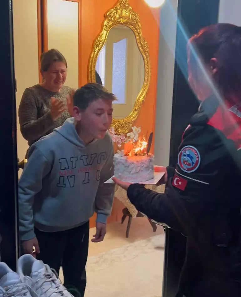 Pastanın mumlarını üfleyen Enes, sürpriz karşısında büyük mutluluk yaşadı. Enes’in annesi Şenay Cıstak duygulanarak gözyaşlarını tutamadı.