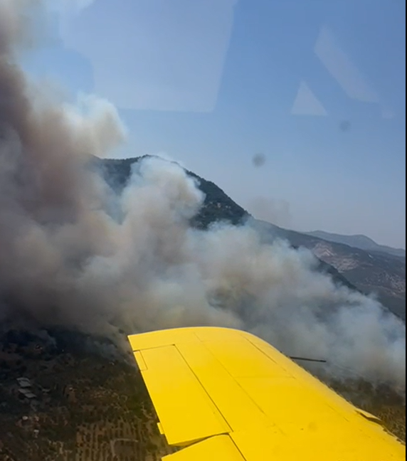Aydın’ın Germencik ilçesinde makilik alanda çıkan yangın kısa sürede rüzgarında etkisiyle ormanlık alana sıçradı.