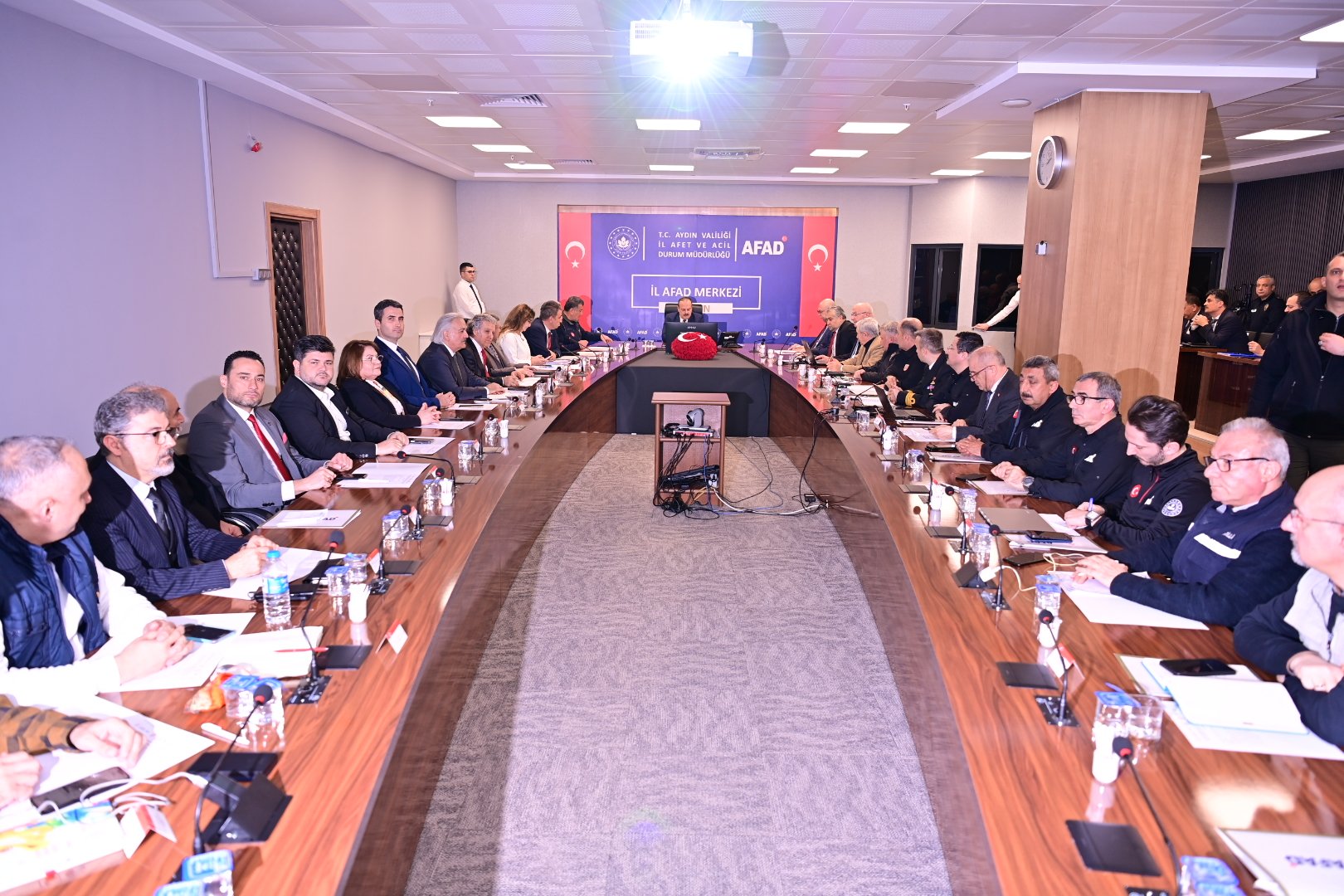 Vali Yakup Canbolat, toplantının ardından yaptığı basın açıklamasın da, AFAD ile koordineli bir şekilde hareket ettiklerini belirterek, “Toplantımızda deprem risklerine karşı erken uyarı sistemleri ve acil müdahale planları detaylı bir şekilde ele alındı. Hazırlanan senaryolar kapsamında mevcut tehlike ve riskli risk haritaları ile tsunami olması durumunda kıyılardaki su seviyeleri ve tahliye haritaları güncellenerek tsunami tahliye planı ve yürüyüş süreleri haritaları oluşturuldu. Türkiye Afet Müdahale Planı çerçevesinde oluşturulan Aydın İl Afet Müdahale Planı kapsamında çalışmalar değerlendirildi” dedi.