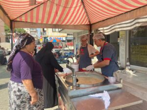 İncirliova’nın sevilen esnaflarından Mehmet Dereli, Muharrem ayı dolayısıyla aşure hayrı gerçekleştirdi. Dereli Emlak önünde yapılan aşure hayrına çevre esnafları ve vatandaşlar tarafından da yoğun ilgi gördü. Dereli, Cuma semt pazarı olması dolayısıyla bugün aşure hayrı yaptıklarına değinerek, katılım gösterenlere teşekkür etti.