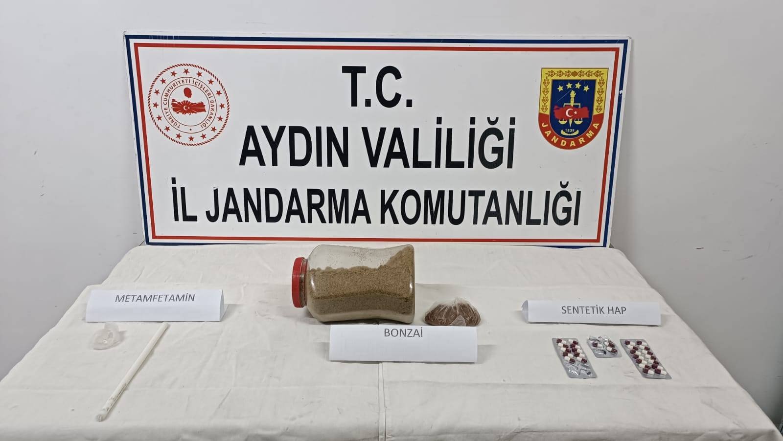 Aydın İl Jandarma Komutanlığına bağlı ekipler ilçede uyuşturucu imal ve satışı yapıldığı bilgisi üzerine çalışma başlattı. Yapılan çalışma sonucunda C.Ö.’ye ait belirlenen ev ve işyerine dün akşam saatlerinde operasyon düzenlendi. Ev ve işyerinde yapılan aramalarda 2 Kilogram kannobinoid uyuşturucu madde, 51 gram bonzai, 25 gram metamfetamin ve 27 Galara isimli sentetik uyuşturucu hap ele geçirildi. Ele geçirilen uyuşturuculara el konulurken, şüpheli ise gözaltına alındı. C.Ö. jandarmadaki işlemlerinin ardından tutuklandı.