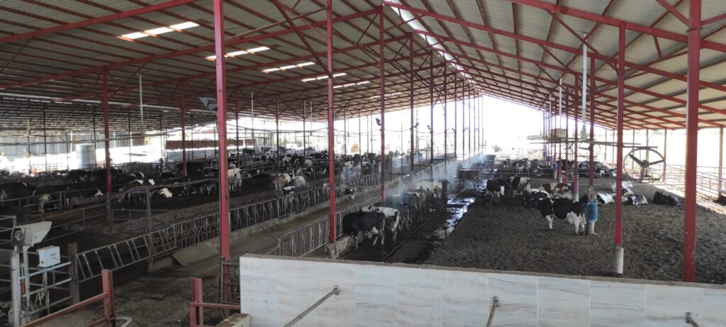 Burada 25 vantilatör var ve 24 saat çalışıyor. Yağmurlama sistemimiz var önce suyu hayvanların üzerine serpiyoruz daha sonra fan devreye giriyor. Fan, üzerindeki nemi kuruturken nem hayvanın üzerindeki sıcaklığı alıyor ve o bölgedeki sıcaklık 25 dereceye kadar düşüyor. Bu sistem sayesinde süt kalitesini, hayvanın kalitesini ve tohumlamayı daha kaliteli yapabiliyoruz “dedi.