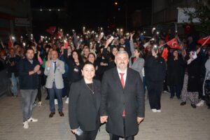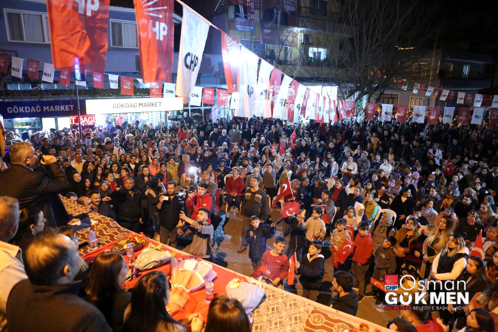 CHP İncirliova Belediye Başkan Adayı Osman Gökmen, sahadaki çalışmalarını miting havasında sürdürüyor. Gökmen, seçim çalışmaları kapsamında Hürriyet Mahallesi’nde vatandaşlarla bir araya geldi. Muhteşem bir kalabalık tarafından meşale, havai fişek ve çiçeklerle karşılanan Gökmen’e vatandaşlar, yoğun ilgi ve sevgi gösterisinde bulundu. Gökmen’e eşi Gülgün Eker Gökmen, CHP İlçe Başkanı Ümit Yaşar, Kadın Kolları Başkanı Merve Menderes, meclis üyesi adayları ve partililer eşlik etti. Mahalle meydanında toplanan yüzlerce vatandaş, Gökmen’in kendilerini selamladığı sırada “Osman gelecek, dertler bitecek” sloganları attı.