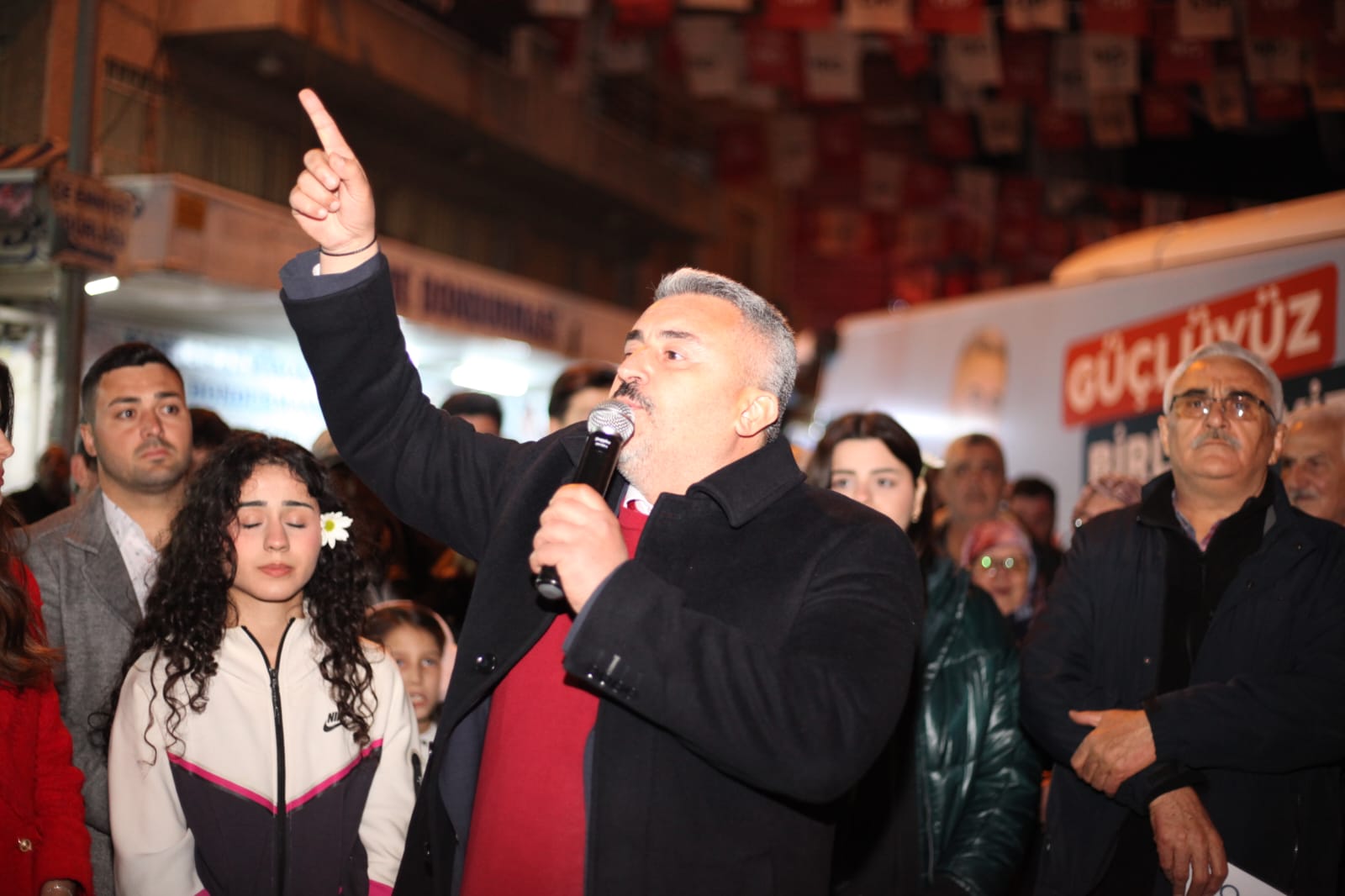 Başkan adayı Gökmen, “Her yerde çalmadık, çırpmadık. Haram yemedik diyormuş. Ben Osman Gökmen olarak soruyorum. Kardeşine ait İNCİRALTI Düğün Salonu yapılırken belediyenin kepçelerini, arabalarını çalıştırdın mı çalıştırmadın mı? Spor Kulübünün kahvaltısında İNCİRALTI’NDA 2 milyon fatura kesildi mi kesilmedi mi? Gürşat Kale başkanken sen her mitinginde satmaya değil almaya geliyorum dedin mi demedin mi? 30 milyonluk yeri kime ne zaman sattın? Başkanlığında buraya bir tabela astın. Aynı tabelayı bekliyorum. Ben de bir başkan adayı gibi İncirliova Halkı da merak ediyor. Adamsan o tabelayı as Aytekin Kaya as. İncirliova Belediyesinin kaç para borcu var görelim” ifadelerine yer verdi.