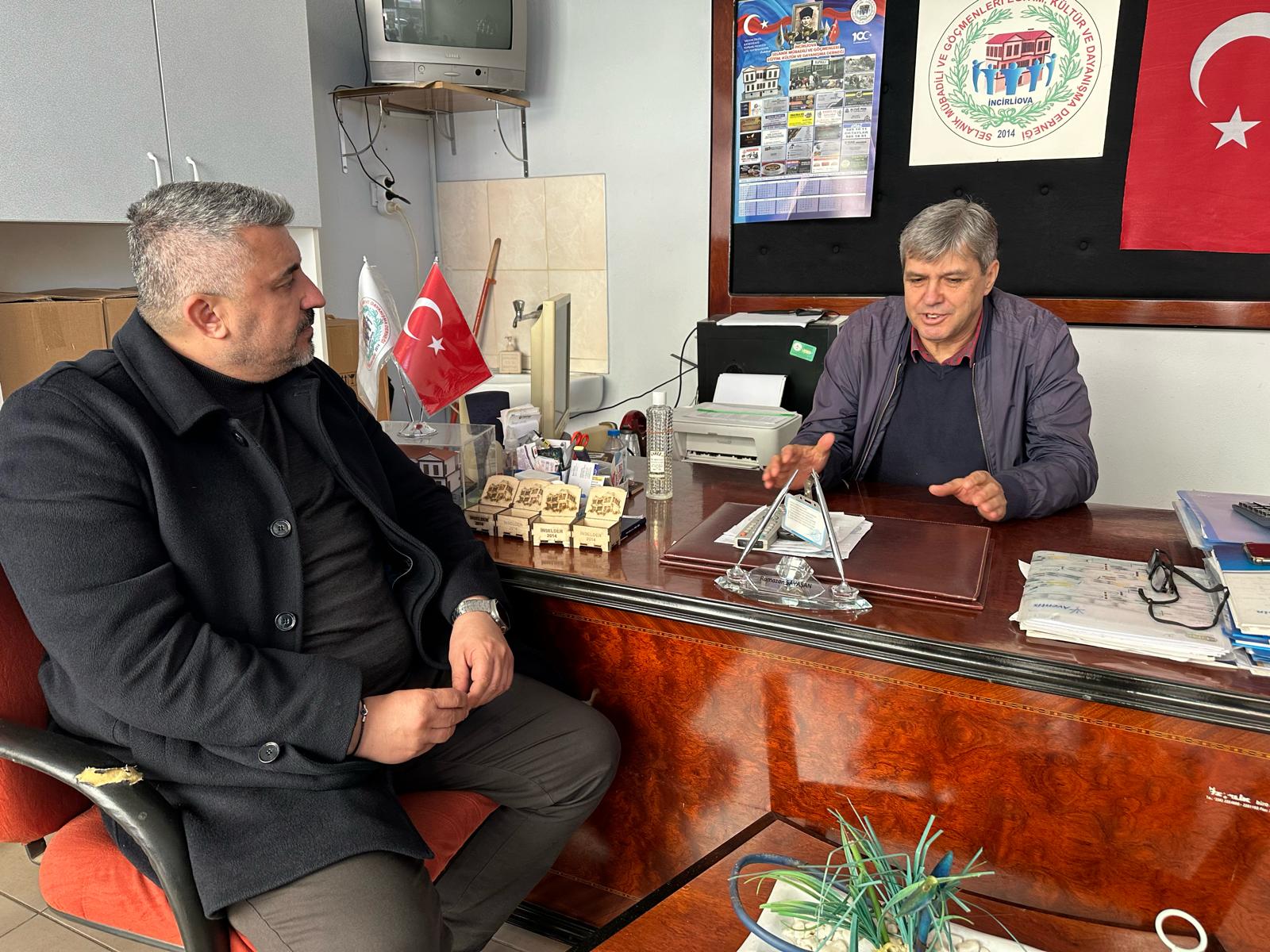 Cumhuriyet Halk Partisi (CHP) İncirliova Belediye Başkan adayı Osman Gökmen, İncirliova Selanik Mübadili ve Göçmenleri Eğitim, Kültür ve Dayanışma Derneği Başkanı Ramazan Savaşan’ı ziyaret etti.