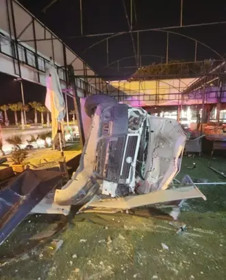 Kaza, saat 01.00 sıralarında Yavansu Mahallesi Süleyman Demirel Bulvarı’nda meydana geldi. Barış Ç.’nin kontrolünü yitirdiği 09 ART 34 plakalı hafif ticari araç kaldırıma çarpıp, o sırada kapalı olan bahçe mobilyaları satışı yapılan mağazaya girdi. Devrilen araçta Barış Ç. ile yanındaki arkadaşı Suat C. sıkıştı. Çevredekilerin ihbarıyla kaza yerine sağlık, itfaiye ve polis ekipleri sevk edildi. İtfaiye ekiplerince kısa sürede araçtan çıkarılan 2 yaralı, Kuşadası Devlet Hastanesi’ne kaldırıldı. Yaralıların durumunun iyi olduğu belirtildi. Hafif ticari araç ile iş yerinde hasar oluştu. Kazaya ilişkin başlatılan soruşturma sürüyor.