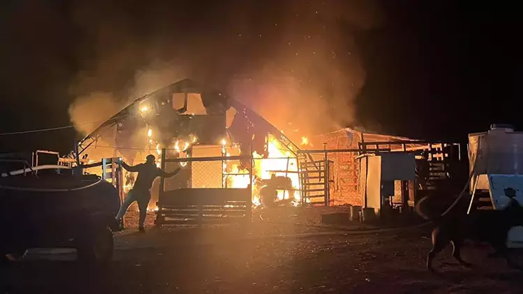 Yangın sonucu çiftlik kullanılamaz hale gelirken, yangının çıkış nedeninin belirlenmesi için inceleme başlatıldı.