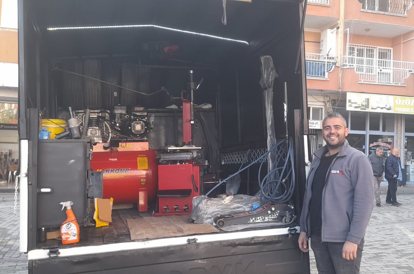 Aydın’ın İncirliova ilçesinde oto lastik sektöründe faaliyet gösteren İbrahim ve Emin Yıldırım kardeşler, müşterilerine daha hızlı ve kaliteli hizmet sunmak amacıyla “Mobil Araç” uygulamasını hayata geçirdi. İş yerlerinde bulunan tüm ekipmanları özel olarak donattıkları mobil araca entegre eden Yıldırım kardeşler, 7 gün 24 saat hizmet vermeye başladıklarını ifade etti.