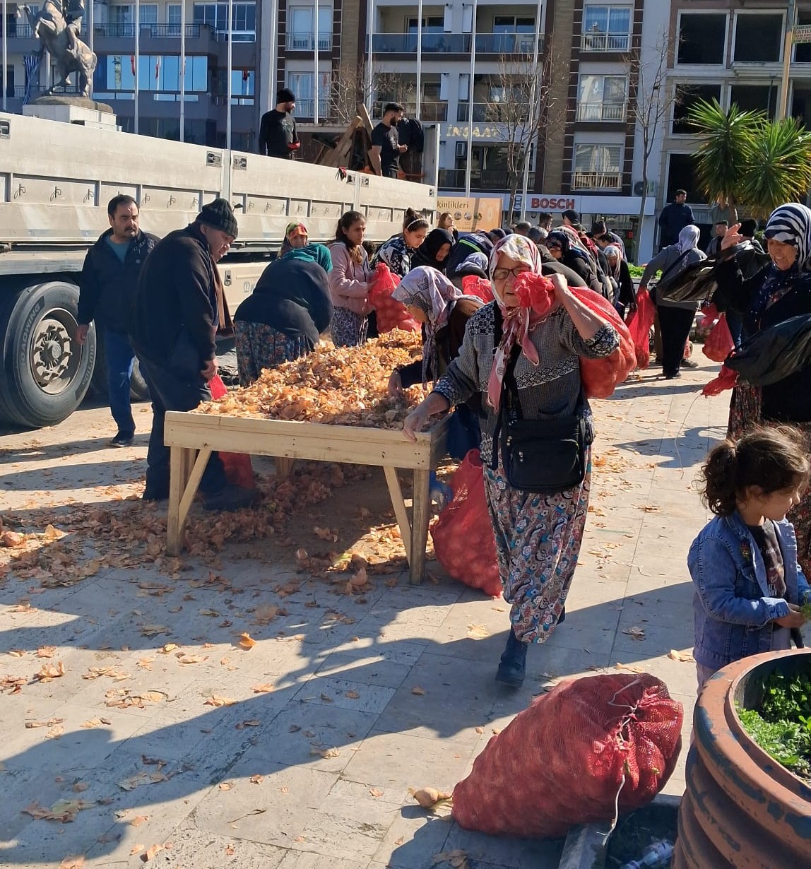 Acarlar Hali esnaflarından Andıç, Cumhuriyet Meydanı’na getirdiği TIR’da bulunan 30 ton soğanı vatandaşlara hayır amacıyla dağıttı. Yoğun ilgi gören dağıtımda, soğanlar yaklaşık yarım saat içinde tamamen tükendi. Vatandaşlar, çuvallar halinde aldıkları soğanları evlerine götürdü.