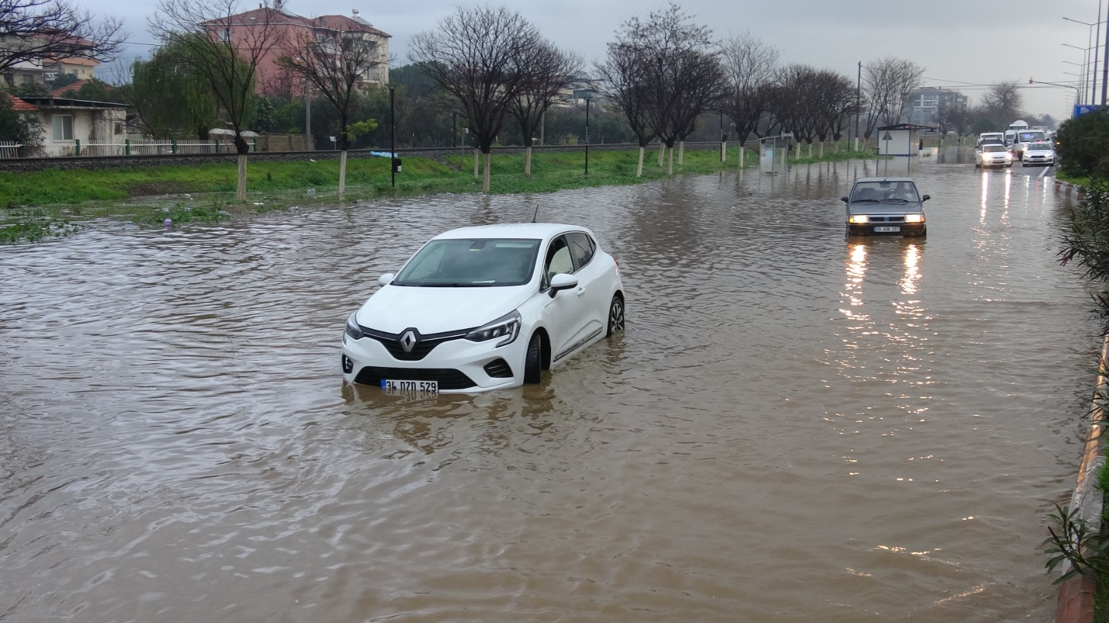 Aydın’da sabah saatlerinde başlayan sağanak yağış devam ediyor. Yağan yağmurlardan dolayı Aydın-İzmir Karayolu İncirliova ilçe girişi adeta göle dönüştü. Efeler İlçesinden İncirliova’ya gitmek isteyen başta toplu taşıma araçları olmak üzere sürücüler zor anlar yaşadı. Ulaşım tek şeritten ilerlerken, bazı otomobiller suda mahsur kaldı. Göle dönen yoldan geçmek isteyenler uzun kuyruklar oluştururken, dakikalarca beklemek zorunda kaldı.