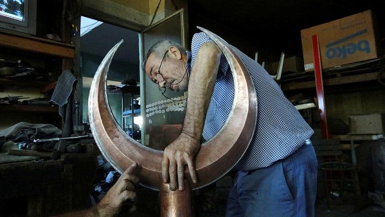 Dededen babaya miras kalan bakırcılık geleneğini 40 yılı aşkın süredir sürdüren Çalışkan, camilerin minarelerinde görülen bakır alemleri tamamen el işçiliğiyle üreterek Türkiye’nin yanı sıra dünyanın farklı ülkelerine ulaştırıyor.