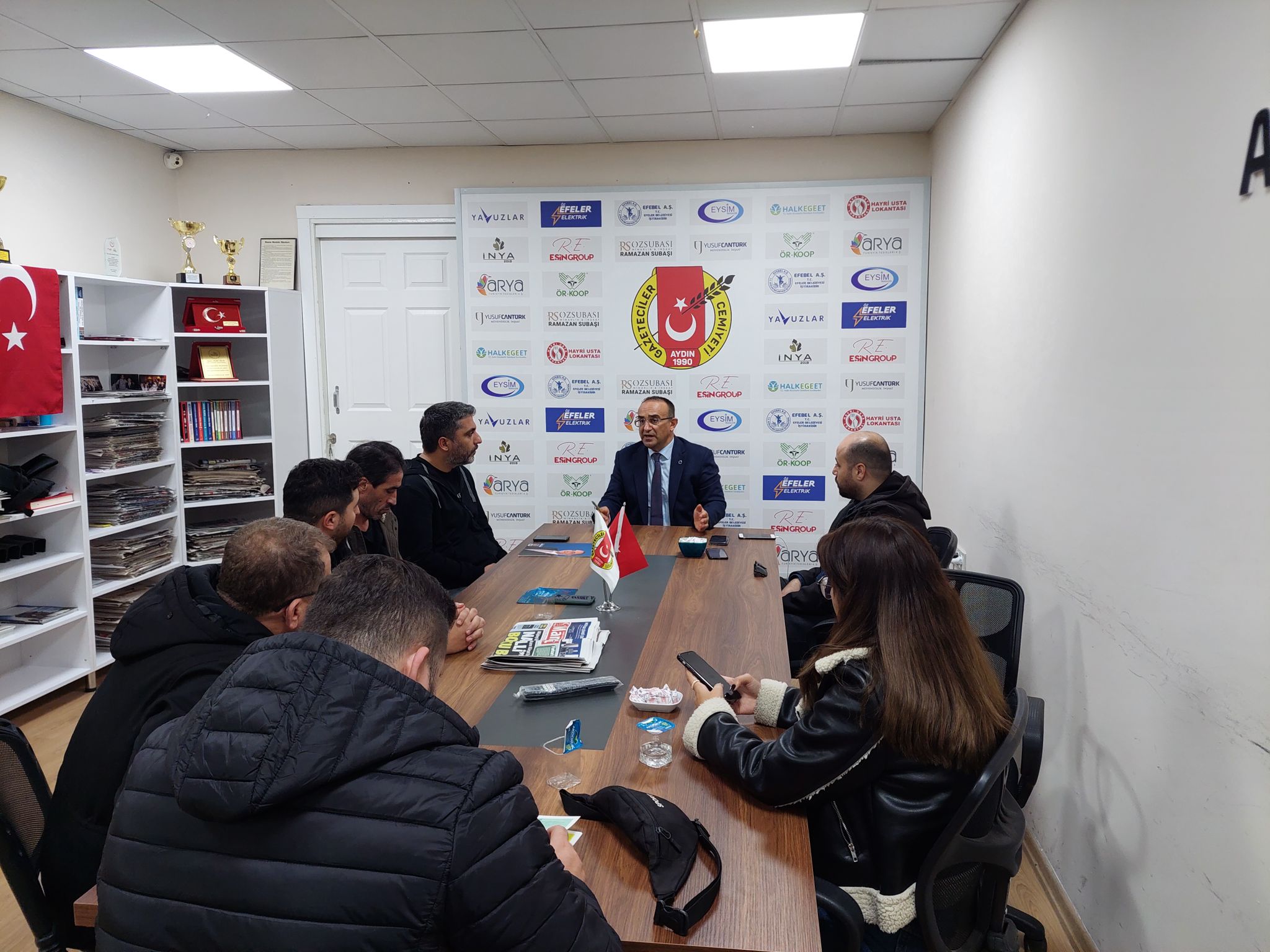 Cemiyet binasında gerçekleşen ziyarette Aydın Gazeteciler Cemiyeti Başkanı Ferdi Uzun ve basın mensupları yer aldı.