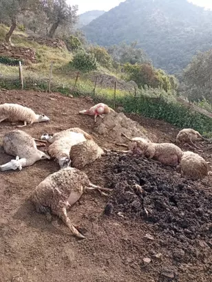 Aydın’ın Çine ilçesinde kurtların saldırısına uğrayan 12 koyun öldü, 8 koyun yaralandı.