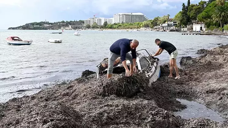 “Dün Kuşadası’nda çıkan fırtınada deniz karaya kadar yükseldi. Sabah geldiğimizde teknemizi yosunların içinde, karaya vurmuş halde bulduk. Bazı tekneler de kayalıklara çarpıp parçalandı. Çok büyük zararımız var. Normalde burada 30-40 tekne vardı, şimdi sadece 8-10 tanesi kaldı.”