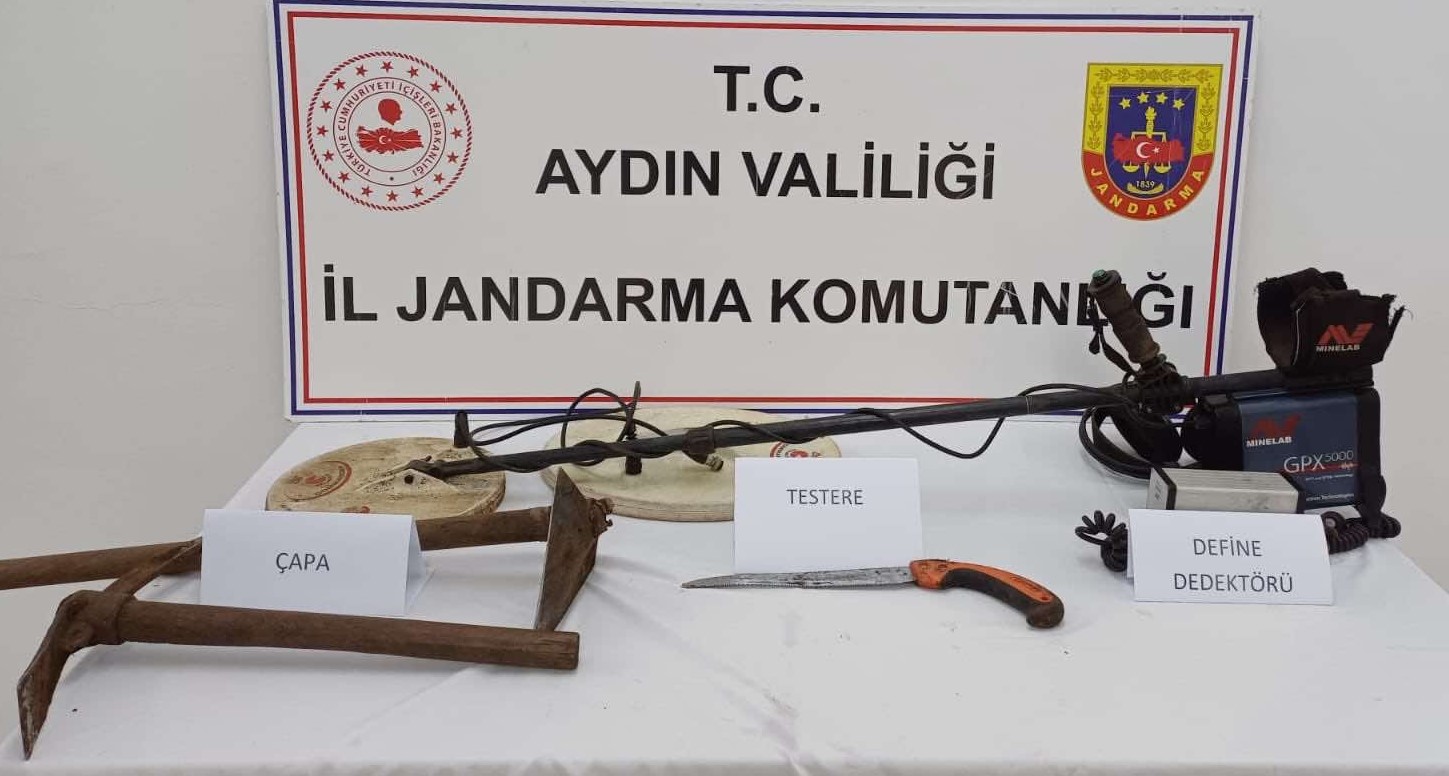 Aydın İl Jandarma Komutanlığına bağlı ekipler Belen Tepesi’nde tarihi eser aramak amacıyla kaçak kazı yapıldığı bilgisi üzerine harekete geçti. Yapılan çalışma sonucu dün bölgeye operasyon yapan jandarma ekipleri M.N.T.’yi kaçak kazı yaparken suçüstü yakaladı. Şüpheliyle birlikte 1 dedektör, 1 kazma, çapa, demir testere ve muhtelif kazı malzemeleri ele geçirildi. Şüpheli gözaltına alındı.