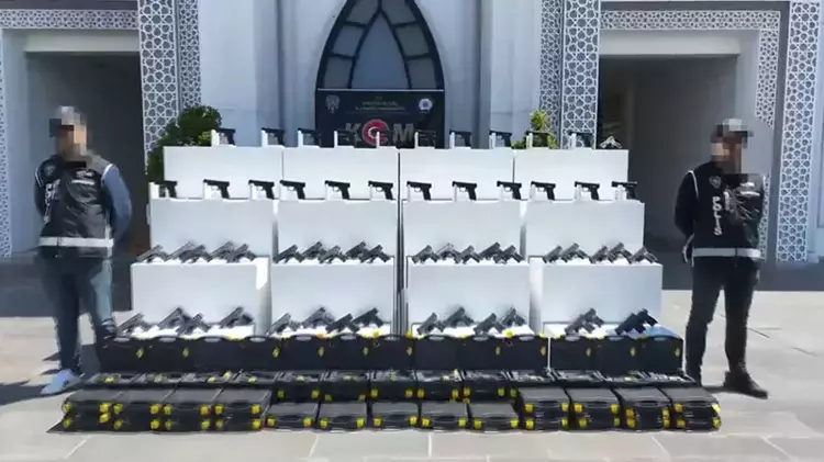 Durdurulan minibüste yapılan aramada; 60 adet 9×19 milimetre çapında tabanca, 60 silah kutusu, 120 şarjör, 120 harbi (fırça) ve 120 kabza aparatı ele geçirildi. Ayrıca suçtan elde edildiği değerlendirilen 2 bin dolar da bulundu.