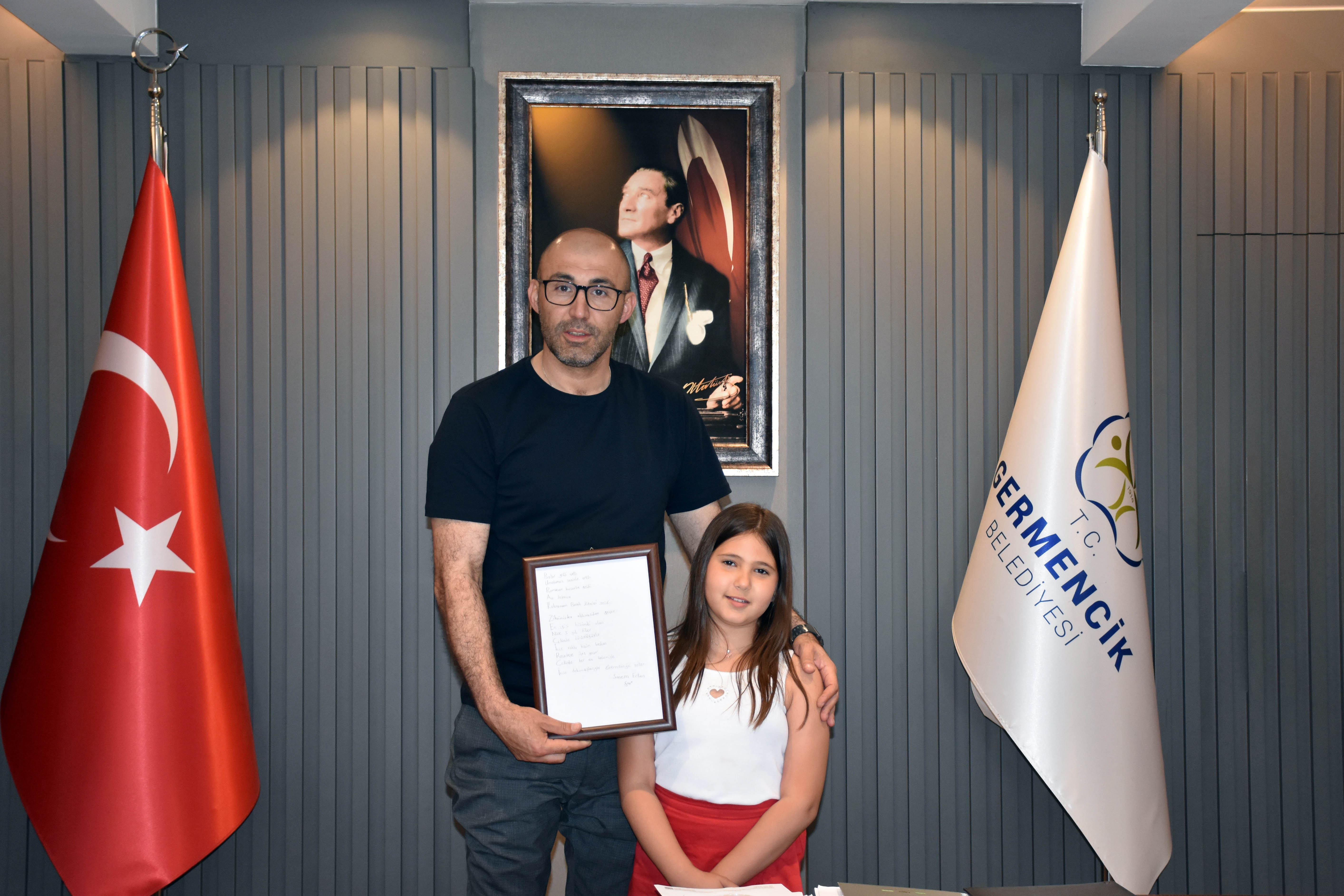 Germencik‘te yaşayan 10 yaşındaki Sanem Ertan, Germencik Belediye Başkanı Burak Zencirci için yazdığı akrostiş şiiri hediye etti.
