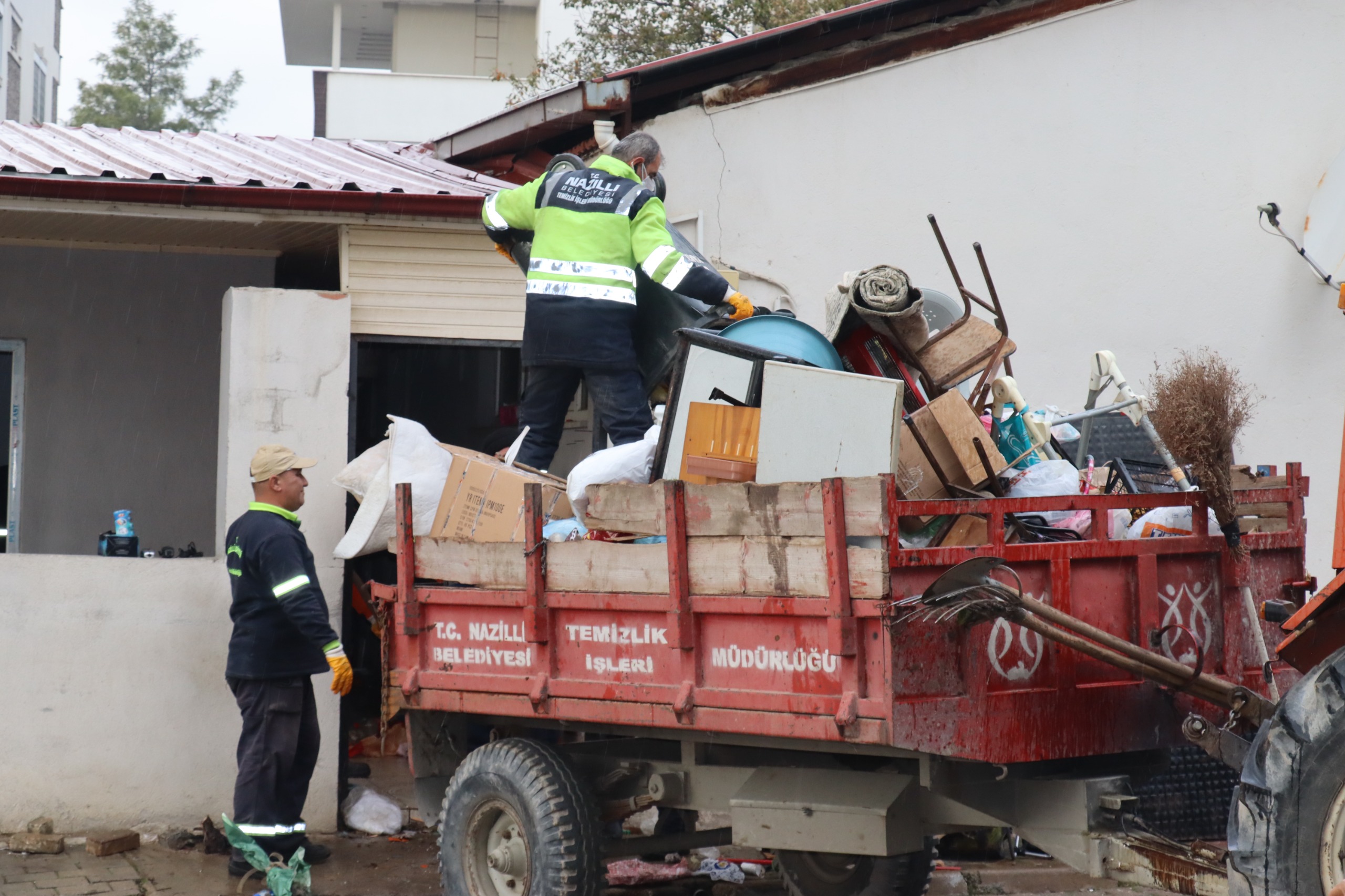 Nazilli Belediye Temizlik İşleri ekipleri Zafer Mahallesi 12 sokak üzerinde bir evden pis koku geldiği ihbarı üzerine harekete geçti. Eve gelen belediye ekipleri içeri girdiklerinde çöp yığınıyla karşılaştı. Daha öncede 6 kez temizlenen ev sahibi Nurten Arzıman’ın itirazlarına rağmen saatler süren çalışma sonrasında evden 4 kamyon çöp çıkarıldı. Çöplerin boşaltıldığı ev daha sonra belediye ekipleri tarafından dezenfekte edilerek temizlendi.