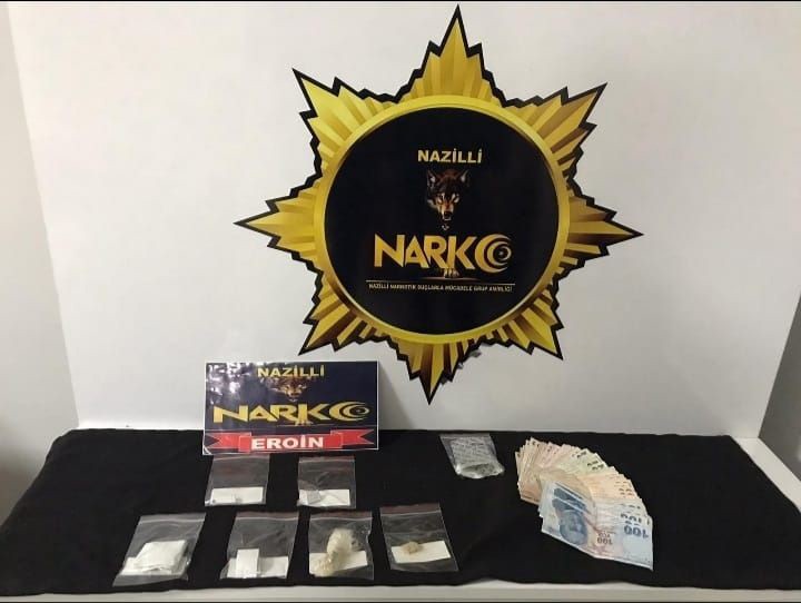 Nazilli İlçe Emniyet Müdürlüğü Narkotik Suçlarla Mücadele Grup Amirliği ekipleri Pınarbaşı Mahallesi’ndeki bir evde uyuşturucu ticareti yapıldığı bilgisi üzerine çalışma başlattı. Belirlenen eve dün sabah saatlerinde operasyon düzenleyen ekipler uyuşturucu madde ticareti suçundan 6 yıl 3 ay kesinleşmiş hapis cezası bulunan E.G. ile uyuşturucu kullanan 2 kişi gözaltına aldı. Evde yapılan aramada, 15 gram eroin, 25 gram esrar, çok sayıda uyuşturucu madde satışı için kullanılan meteryal ve uyuşturucu madde ticareti geliri olduğu değerlendirilen 2 bin 250 lira nakit para ele geçirildi. Uyuşturucu madde kullanan iki şüpheli emniyetteki işlemlerinin ardından serbest bırakılırken, için adliyeye sevk edilen 6 yıl 3 ay kesinleşmiş hapis cezası olan E.G. ise çıkartıldığı mahkemece tutuklanarak cezaevine gönderildi.