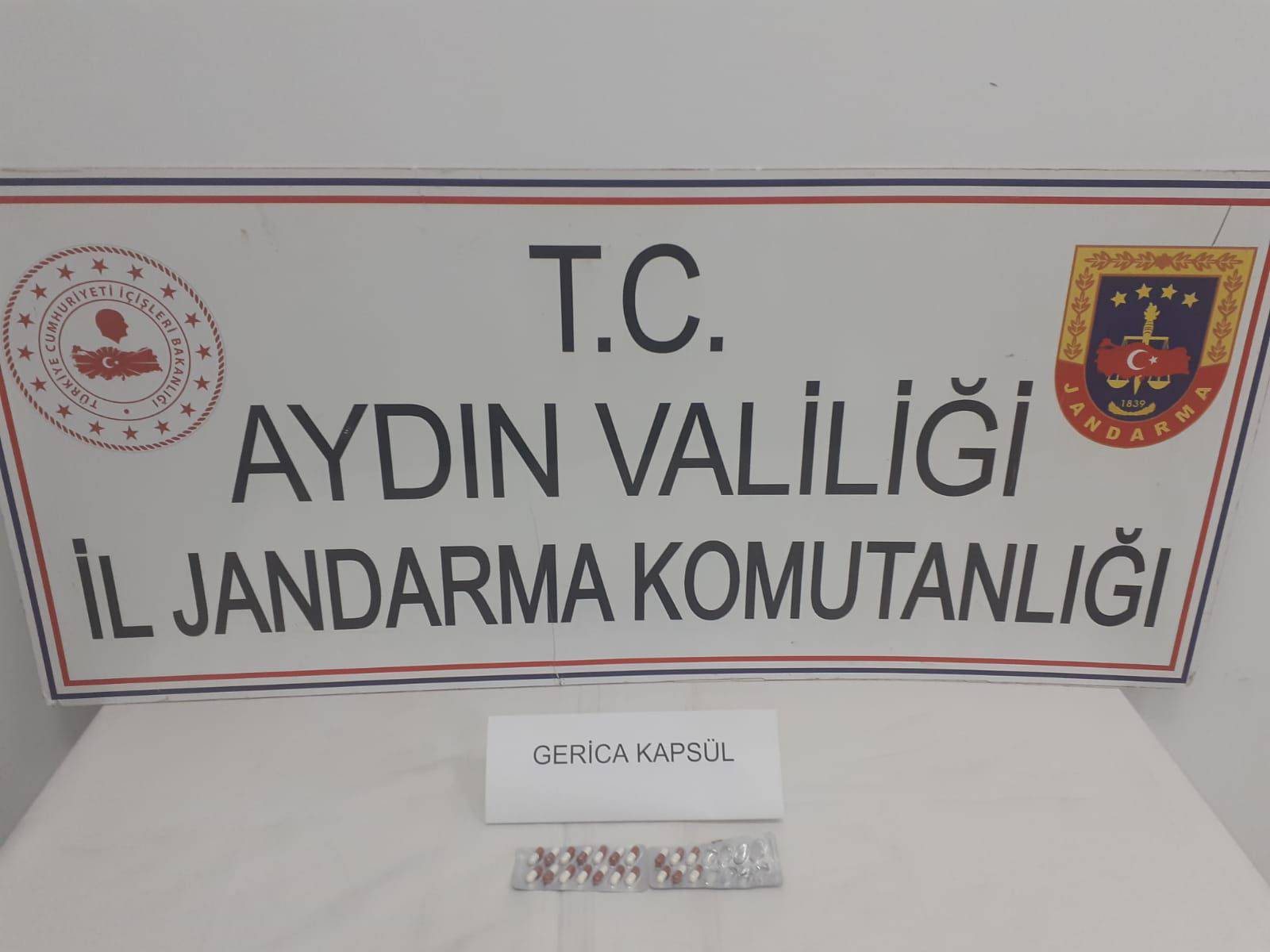 Aydın İl Jandarma Komutanlığına bağlı Hıdırbeyli Jandarma Otoyol Karakol Komutanlığına bağlı ekipler Aydın-İzmir Otoyolu üzerinde şüphe üzerine bir otomobili durdurarak arama yaptı. Otomobilde 22 sentetik uyuşturucu hap ele geçirildi. Otomobilde bulunan 5 şüpheli ise gözaltına alındı. Şüphelilerin işlemlerinin sürdüğü öğrenildi.