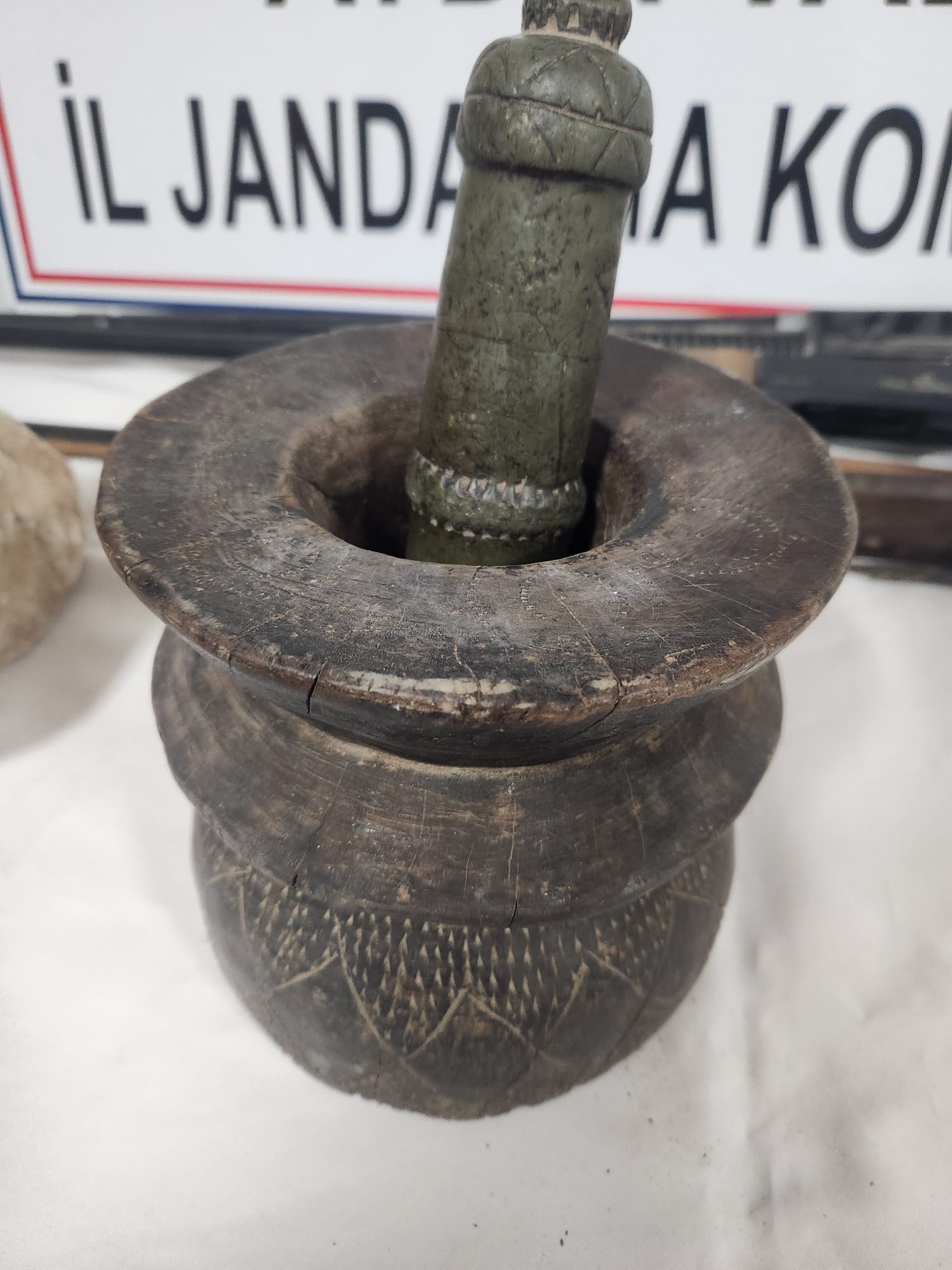 Karacasu İlçe Jandarma Komutanlığına bağlı ekipler Yaykın Mahallesinde tarihi eser kaçakçılığı yapıldığı bilgisi üzerine çalışma başlattı. Yapılan çalışma sonucu adresi belirlenen E.E.’nin evine sabah saatlerinde operasyon düzenlendi. Ev ve eklentilerinde yapılan aramalarda: 1 yüzük, 1 dibek taşı, 1 kadın yüz figürü bulunan obje, 2 el dedektörü ve aparatları ile 1 ruhsatsız tabanca ve 3 ruhsatsız av tüfeği ele geçirildi. Yüzük, dibek taşı, kadın yüz figürü bulunan objelerin Roma dönemine ait maddi açıdan önemli bir değere sahip olduğu belirlendi. Tarihi eserler işlemlerinin ardından Aydın Arkeoloji Müze Müdürlüğüne teslim edilecek. Şüphelinin ise işlemlerinin sürdüğü öğrenildi.