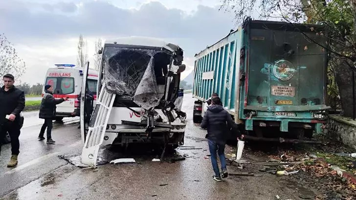 Kaza, Şehzadeler ilçesi Yeni Harmandalı Mahallesi Manisa-Turgutlu kara yolunda meydana geldi. Manisa Organize Sanayi Bölgesi’nde faaliyet gösteren klima fabrikasında çalışan işçileri taşıyan 45 J 1877 plakalı servis minibüsü, Akpınar Mesire Alanı önünde sürücüsünün direksiyon hakimiyetini kaybetmesiyle, park halindeki Manisa Büyükşehir Belediyesi’ne ait 45 M 9681 plakalı çöp kamyonuna arkadan çarptı. Çarpmanın etkisiyle servis aracında bulunan işçiler bulundukları yerden savrularak, yaralandı. İhbarla olay yerine çok sayıda ambulans, itfaiye ve polis ekibi sevk edildi. Polis, kaza yeri ve çevresinde güvenlik önlemi alırken, sağlık ekipleri yaralılara müdahale etti. Olay yerinde müdahalesi yapılan 17 yaralı ambulanslarla hastanelere kaldırıldı. Tedaviye alınan yaralılardan 5’inin sağlık durumunun ciddiyetini koruduğunu öğrenildi. Kazayla ilgili soruşturma sürüyor.