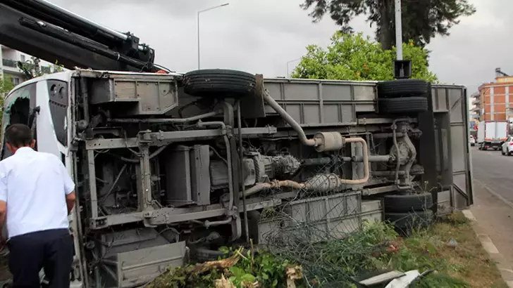 Antalya‘nın Serik ilçesinde otel personelinin taşındığı servis midibüsünün devrildiği kazada, 19 kişi yaralandı.
