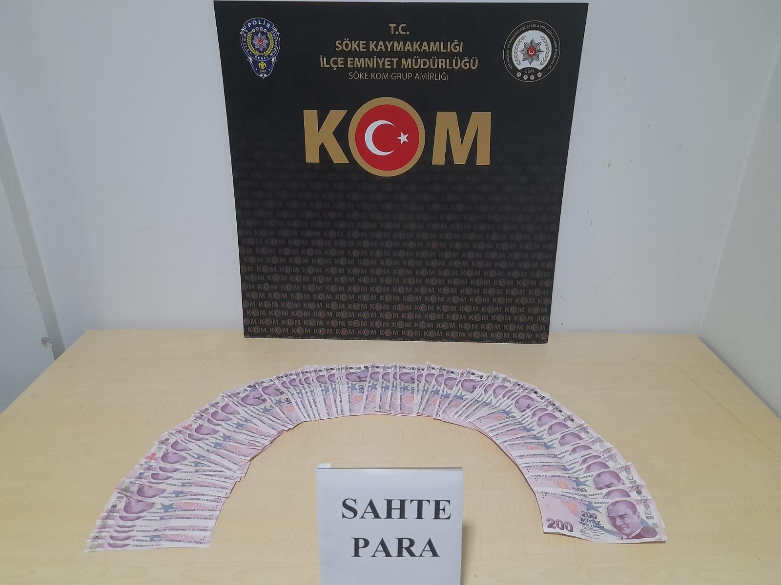 Söke İlçe Emniyet Müdürlüğü Kaçakçılık ve Organize Suçlarla Mücadele Bürü Amirliği ekipleri otogarda şüphe üzerine M.T.’yi durdurarak kimlik kontrolü yaptı. Üzeri aranan şüpheliden 105 adet 200 TL olmak üzere toplam 21 bin TL sahte para ele geçirildi. Sahte paralara el konulurken, şüpheli M.T. polisteki işlemlerinin ardından sevk edildiği mahkemece tutuklandı.