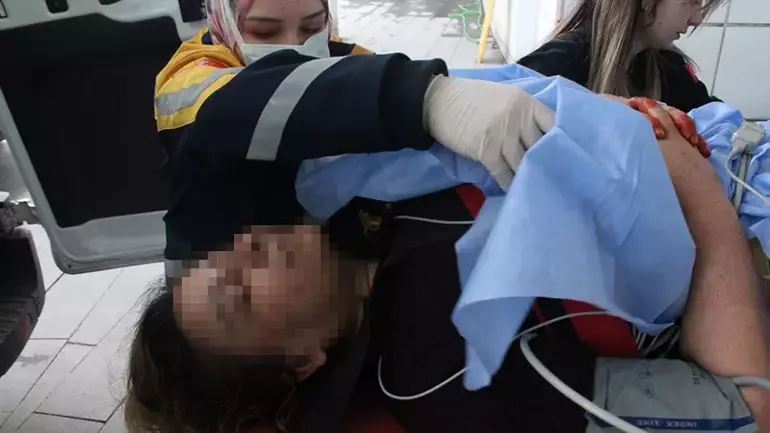 Ambulanstan indirilip, hastanenin acil servisine alınan Hülya Ç., sağlık görevlilerine, “Canım çok acıyor. Ne olur bana yardım edin” dedi. Polis, kaçan şüphelinin yakalanması için çalışma başlattı.