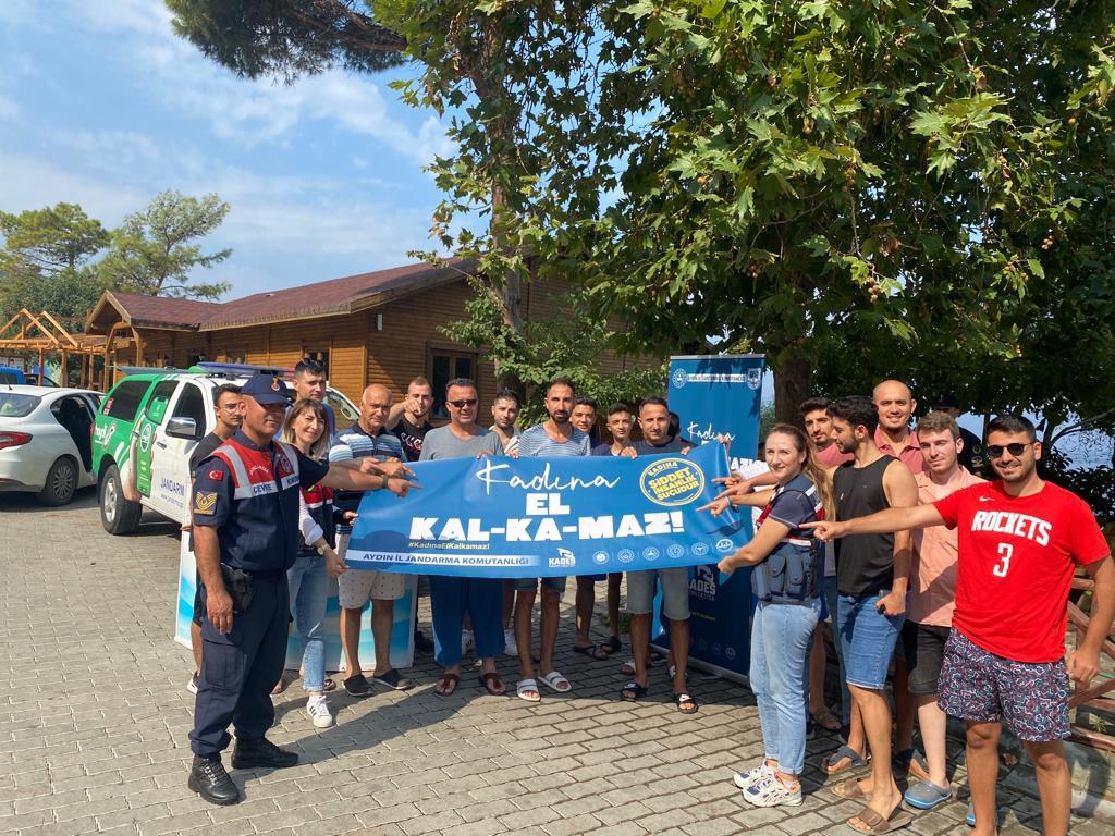 Aydın’ın Kuşadası ilçesindeki Dilek Yarımadası Büyük Menderes Deltası Milli Parkı’na tatil yapmaya gelenler, orman yangınları ile kadına şiddetle mücadele kapsamında bilgilendirildi.