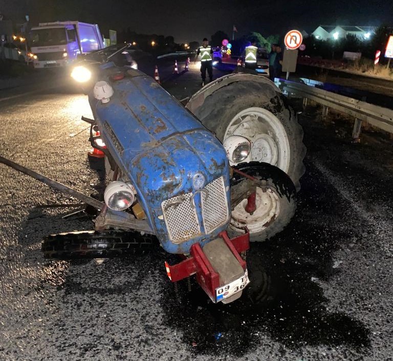 Aydın yönünden İzmir istikametine gitmekte olan Mehmet Ali Taşdemir (68) idaresindeki 20 YA 446 plakalı otomobil Mustafa Lop’un (59) idaresindeki 09 TE 366 plakalı traktöre çarptı.